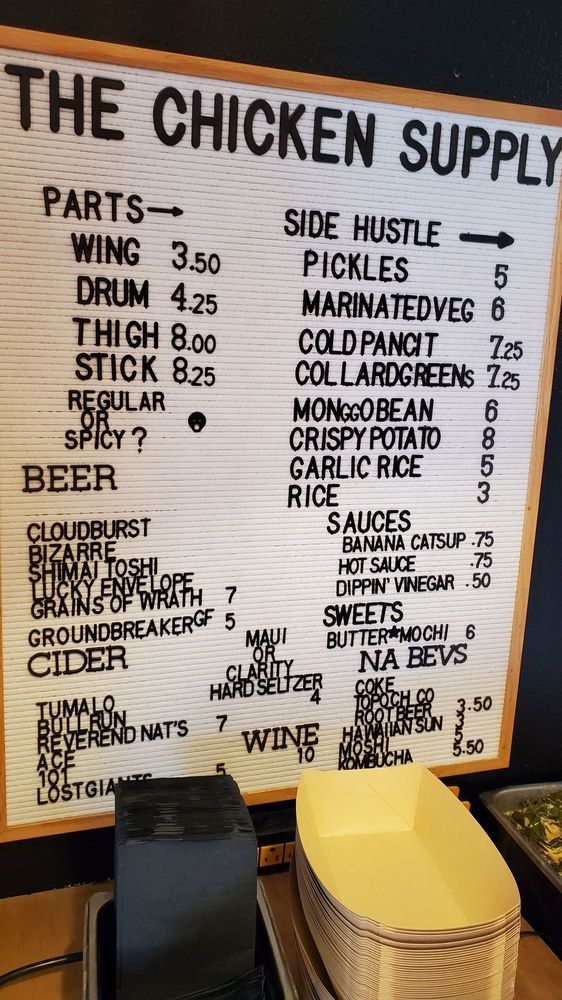 Introducing The Chicken Supply, a Filipino chicken shop located in Seattle. Specializing in chicken wings and juicy thigh bits, their dishes are a must-try. The menu also offers unique side hustles like marinated vegetables and house pickles, adding a delightful twist to your meal. Customers rave about the flavorful chicken, crispy batter, and generous portion sizes. The hot sauce and banana ketchup are perfect complements to the dishes. The cozy ambiance and friendly service make dining at The Chicken Supply a delightful experience. For a taste of crispy, flavorful Filipino-style fried chicken, look no further than The Chicken Supply.